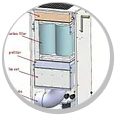 | 仕様 | 寸法:高さ90センチ 幅48cm 奥行き36.1cm 重量:58 kg(すべてのフィルターを取り付けた状態) システム出力:150m3/h 電圧:110〜240 VAC 50〜60 Hz 日本電源対応 電流消費:DC:最大4.1アンペア 電源コード:1.8メートル |